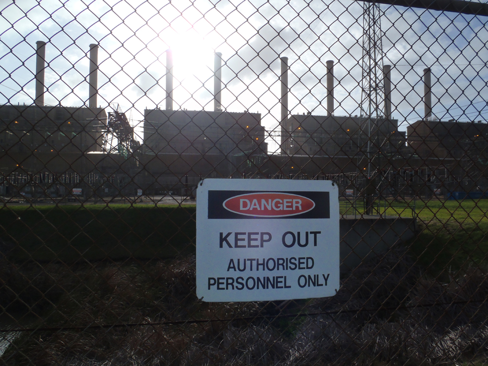 Danger Keep out - power station polluting
