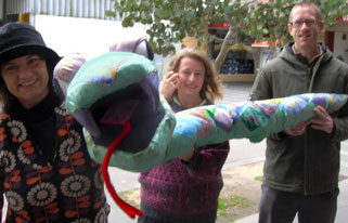 Our heartfelt thanks go to the dedicated team of volunteers from the Multicultural Women’s Sewing Group, Moreland Energy Foundation and Polyglot Theatre for the loan of their snake puppet. The community activity was made possible with assistance from Moreland Council through their community development grants.