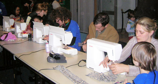 The room was a hive of activity! Many people dropped in to make a door snake or two. There were crafty games for younger children, while their parents and older siblings received expert sewing guidance from members of the Women’s Sewing Group. There were handsome pin-striped door snakes, as well as floral, tweed and a few shiny hot pink snakes that were proudly taken home.