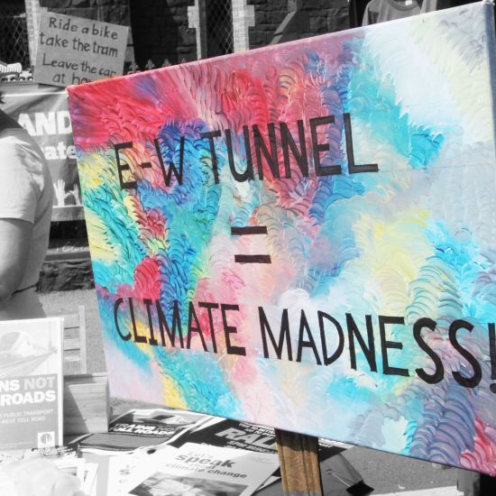 Climate Action Moreland had a leaflet connecting the dots between building the East-West tunnel and climate change. We were active in giving out leaflets for the Sunday March 30 rally against the East West tunnel.