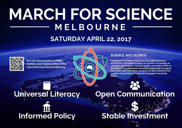 On Saturday, Earthday, scientists are on the march, including in Melbourne. They are asking for science to inform public policy, for the media to take note and respect the science, instead of giving equal time to charlatans and deniers under the label of ‘balanced debate’. We have seen cutbacks in funding for science research here in Australia, and are witnessing a major attack on government scientific organisations with the Trump regime in the United States.