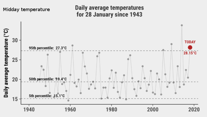 Above the 95th percentile #extremeheat and the day is not done. Stay cool and hydrated and remember Turnbull Gov in #auspol failing to act rapidly reducing emissionshttps://t.co/9nGbzdV0O4 pic.twitter.com/jJLiJdBqBW— Climate Act Moreland (@camoreland) January 28, 2018