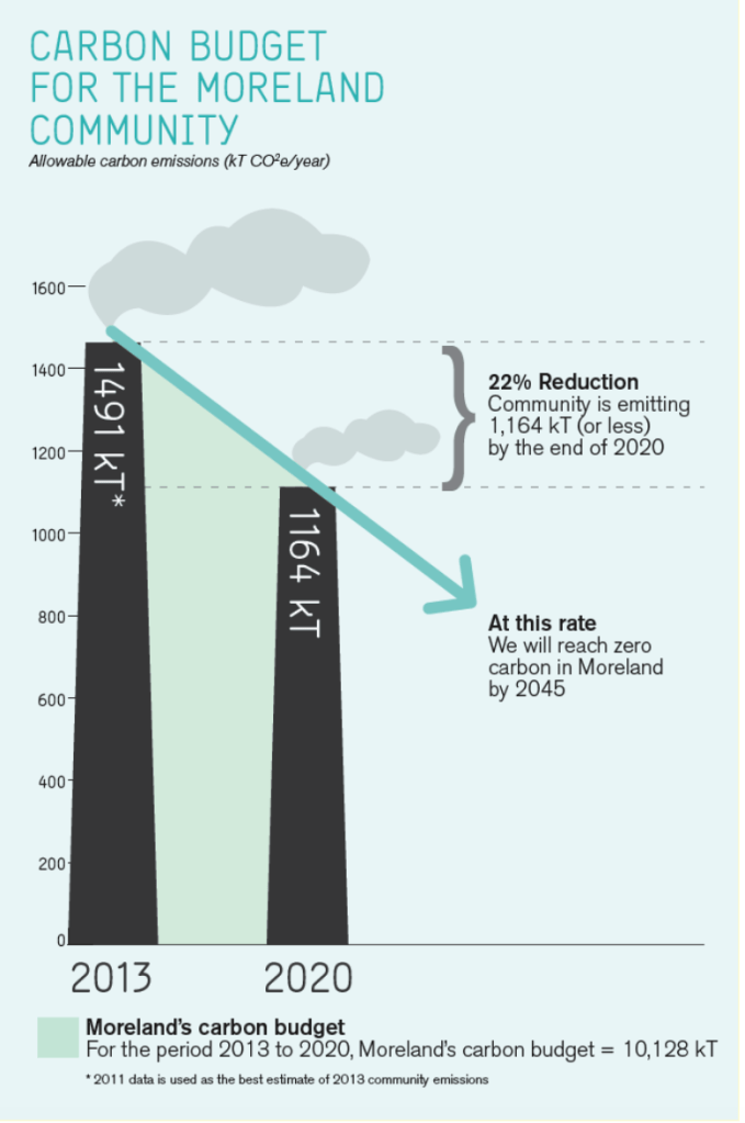 Moreland’s emission reduction strategy is based on a carbon budget approach, which also should be applied at the state government and national levels. This is a science based approach of setting equitable targets: