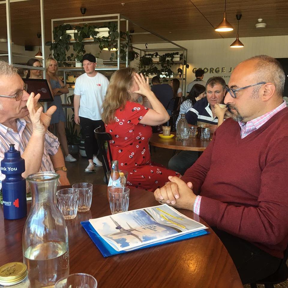 Saturday morning in Pascoe Vale and Wills MP Peter Khalil caught up to discuss issues with several constituents at the George Jones Eatery (named after Pascoe Vale’s first shopkeeper in 1841)