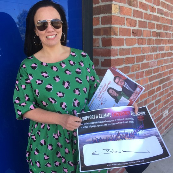 Sitting Labor MP Lizzie Blandthorn was given an invitation to sign the Climate emergency declaration. She has signed.: