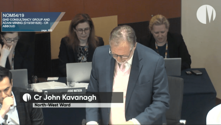Cr Kavanagh: “I don’t know what role GHD has in the Adani mine but to me their work might mitigate some of the damage of the Adani mine by putting in practices that are actually positive in their work. I’m ill advised in their role.