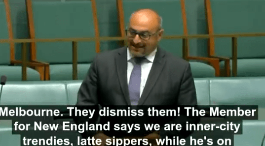 Mr KHALIL (Wills) (13:32): The people of Wills have been advocating for urgent action on climate change for decades. They’re dedicated, passionate and want only a better Australia, a better world for future generations. Yet how do the Liberals and Nationals respond to the voters I represent in the inner north of Melbourne? They dismiss them! The member for New England says we are ‘inner-city trendies’, ‘latte sippers’ while he’s on the side of ‘people from the real world’. It’s unclear what world the Liberals and the Nats are living in, but I’m here to stand up for the people of Wills, who do live in the real world. Unlike the Liberals and the Nats, we accept the science of climate change. We want to see Australia take urgent action; we, when faced with a global challenge, don’t shy away and say, ‘It’s all too hard.’ We say, ‘Let’s be leaders.’
