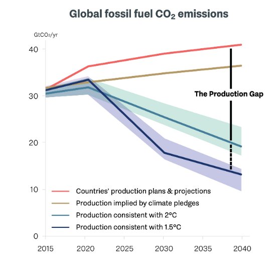 The 2019 Production Gap report highlighted the discrepancy between fossil fuel extraction and how much we need to leave in the ground to meet the goals of the Paris Agreement and reduce the climate crisis. “Governments are planning to produce about 50% more fossil fuels by 2030 than would be consistent with limiting warming to 2°C and 120% more than would be consistent with limiting warming to 1.5°C.”
