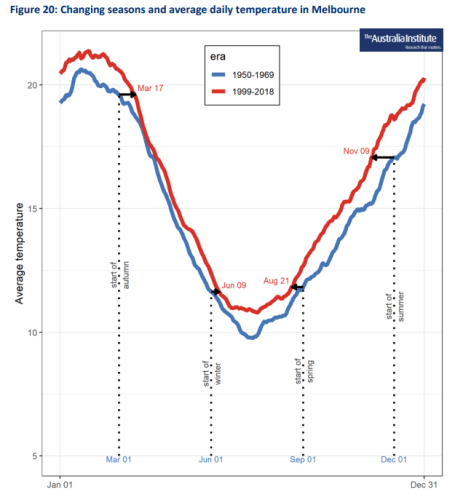 The Australia Institue (March 2020) , Out of Season. Expanding summers and shrinking winters in subtropical and temperate Australia https://australiainstitute.org.au/wp-content/uploads/2020/12/P834-Out-of-Season-WEB.pdf
