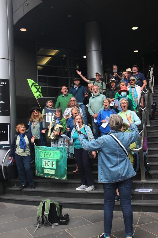 The Melbourne Climate Choir will be out in full force welcoming the students from 11.00am at the Gordon Reserve in Spring Street. All voices are very welcome.