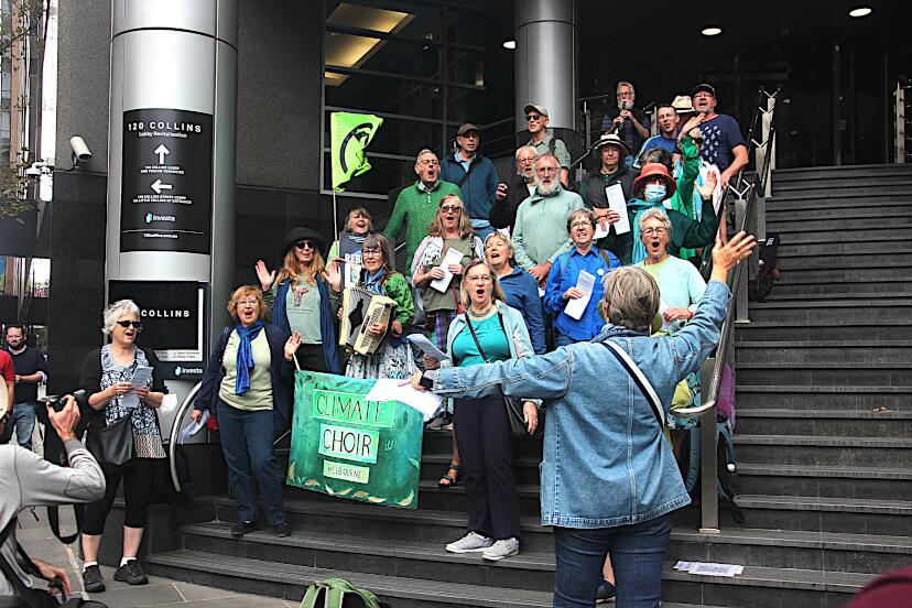 The Melbourne Climate Choir will be out in full force welcoming the students from 11.00am at the Gordon Reserve in Spring Street. All voices are very welcome.