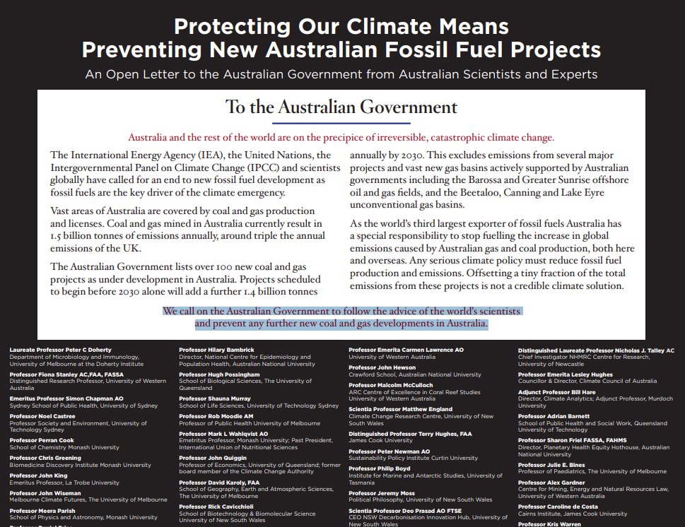 The Australia Institute, An Open Letter from Australian Scientists and Experts – No New Fossil Fuel Projects