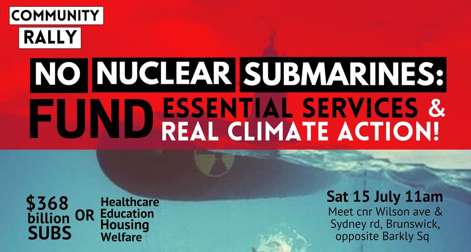 We need to stop the government wasting extraordinary amounts of money on weapons for an arms race, when the money is needed for urgent climate action and many other urgent social needs and essential services. That means that we need to build broad community opposition to the purchase of nuclear-powered submarines.
