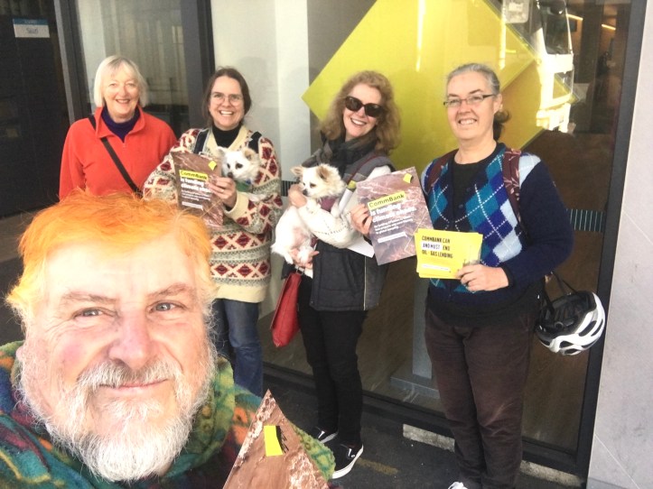 Climate Action Merribek was part of this campaign by 350 Australia, including a small protest outside the Brunswick Commonwealth Bank Branch in May 2023.