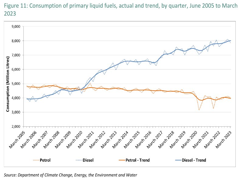 - strong increase in diesel consumption since 2009. Underlying reasons include the population driven increase in the road transport fleet, increasing popularity of diesel vehicle options for passenger vehicles and increasing demand for freight which is dominated by diesel-powered light commercial and heavy vehicles.
