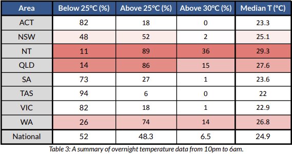 above 25°C, including overnight, where median temperatures were hotter than