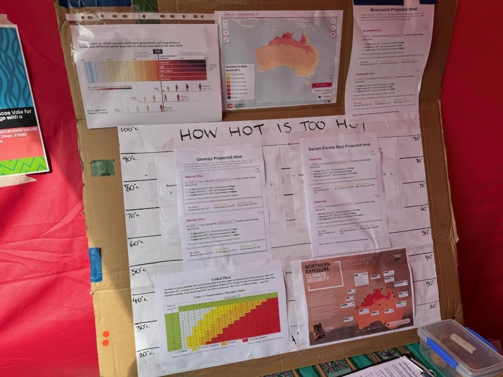We had a display on projected extreme heat for Glenroy, and Australia based on Climate Council/CSIRO research. Climate Council research shows Extreme heat days will double for most Australian cities by the end of the century. But the number of extreme heat days across Australia’s top will be particularly severe and will bring the risk of Lethal Humidity.