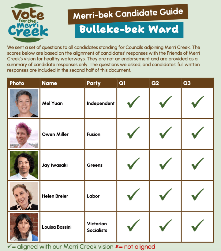 See Friends of Merri Creek 2024 election guide for six Councils in the Merri Creek Catchment.
