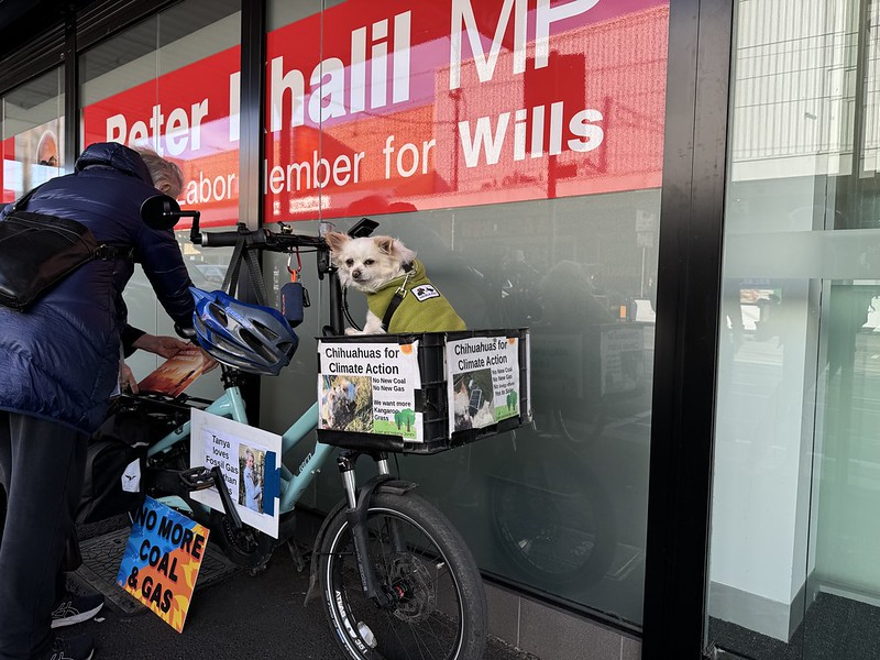 Meanwhile, while we were meeting with Peter inside his office, a couple of people and The chihuahuas for Climate Action stayed outside handing out leaflets to passsers-by.