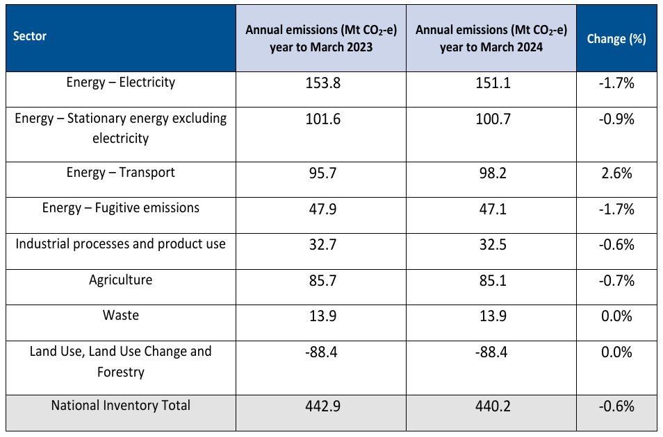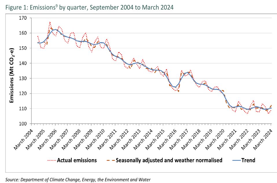 DCCEEW, 30 August 2024, National Greenhouse Gas Inventory Quarterly Update: March 2024 https://www.dcceew.gov.au/climate-change/publications/national-greenhouse-gas-inventory-quarterly-update-march-2024#dcceew-main