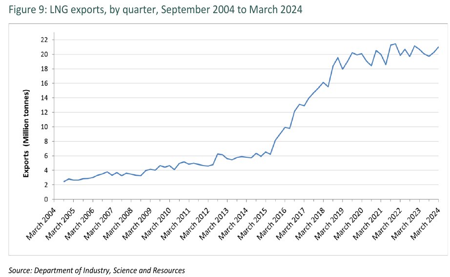 Stationary energy (excluding electricity) – which has experienced the largest growth of any sector since June 2005. Emissions have increased 22.4% or 18.4 Mt CO2-e driven, in particular, by continued growth in the production and export of LNG;