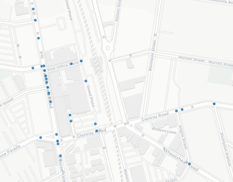 Pascoe Vale Road is a major concern for residents. It’s a shopping strip, but also a major thoroughfare for motor vehicles. The Glenroy activity centre is one of Merri-bek’s hotspots for pedestrian road trauma. The past 12 years of government data show that 40 pedestrian injuries and fatalities have occurred there (including 2 deaths, and 22 hospitalised). This represents one in every 15 of Merri-bek’s pedestrian casualties. The locations are shown on the map below. Nearly two thirds occurred on Pascoe Vale Road.