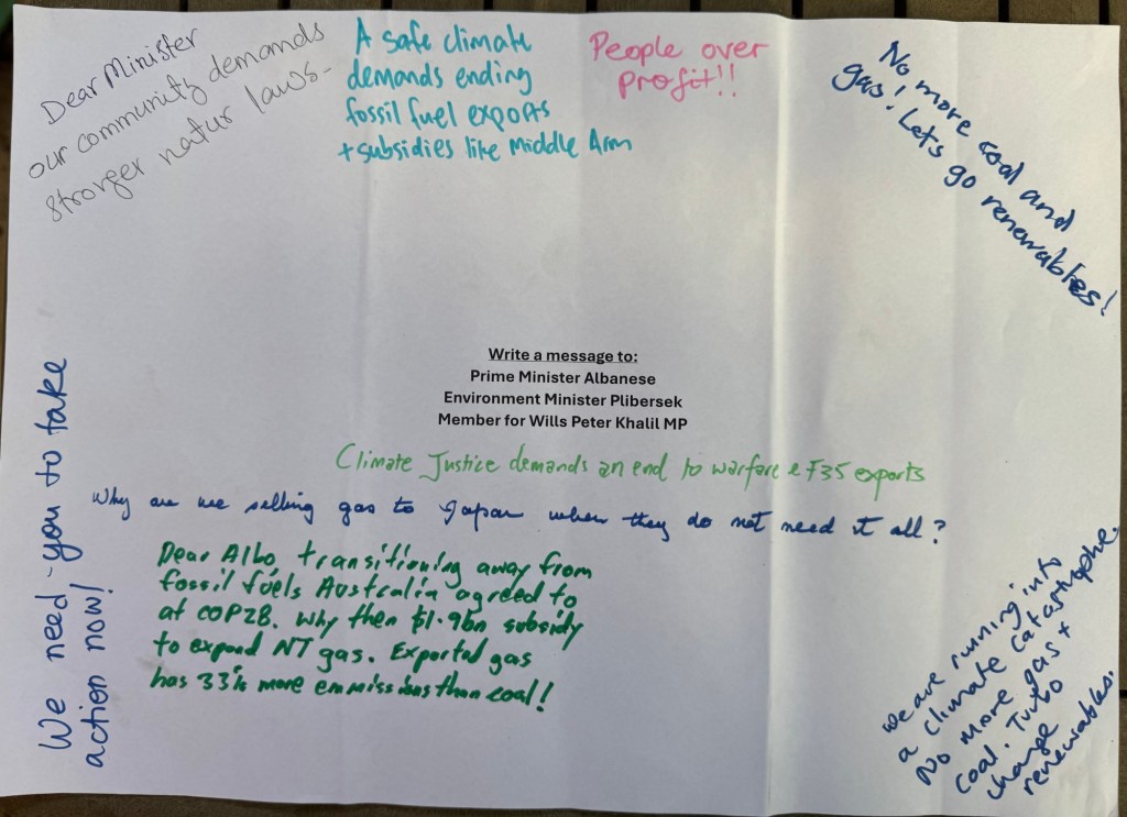 The community meeting at Coburg Town Hall on November 23 collected messages for Wills Labor MP Peter Khalil, Environment Minister Tanya Plibersek, and Prime Minister Anthony Albanese.