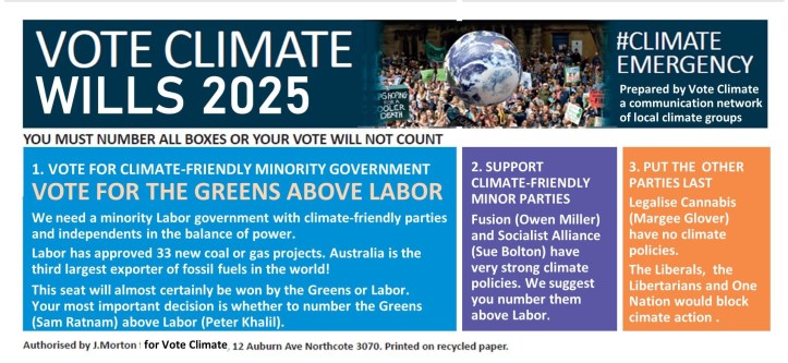 Vote Climate One uses a traffic light system to assess candidates on climate policies, but lets you make your preference. While this is fairly safe for Wills electorate, for the Senate they allocate Labor as the same level as the Liberals and many right wing parties with poor climate credentials. Labor, based on its track record, clearly deserves to be preferenced before the Liberals and many of these parties. The Vote Climate Senate assessment of preferencing is much better and recommended. Read more on Vote One Climate for Wills.