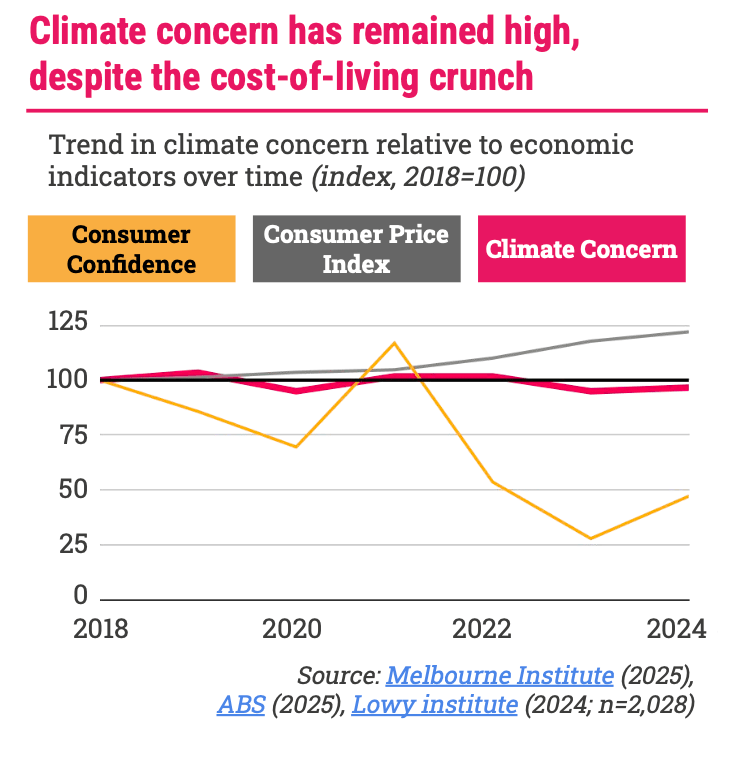 – Climate concern has remained persistently high across swathes of the Australian community, in spite of the cost-of-living crunch.