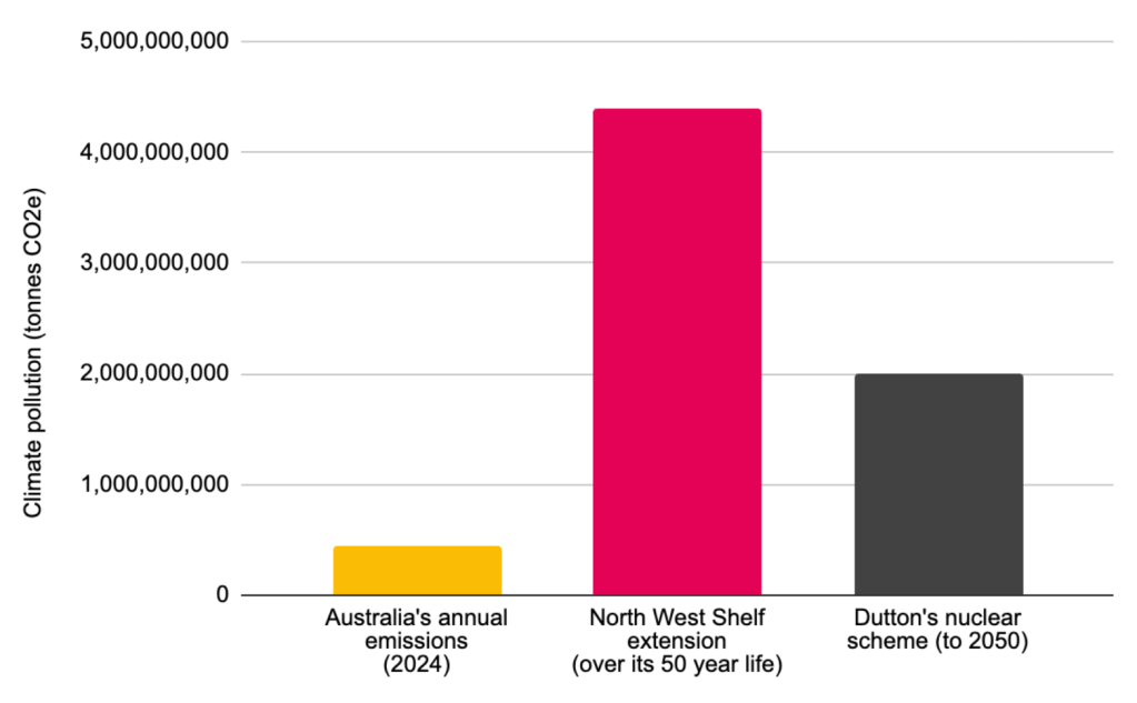 - With on-site emissions of 7.7 million tonnes per year, the North West Shelf extension would be Australia’s second most polluting fossil fuel facility. It is already the third most polluting, releasing 6.1 million tonnes in the 12 months to July 2024.