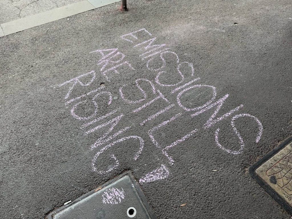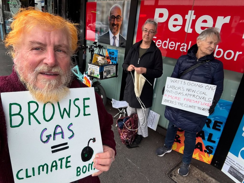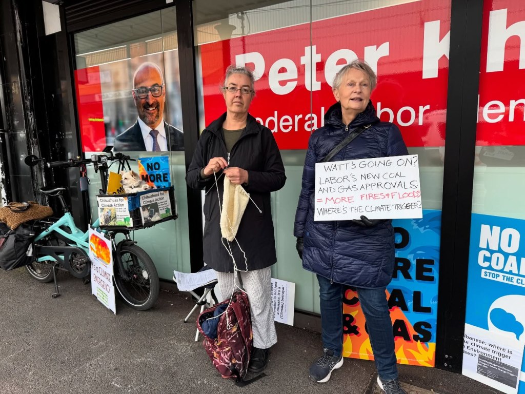 We knitted, we danced, we talked to passers by, we drank coffee, we played music, we chaulked messages on the pavement, we discussed the current situation here in Australia and globally with climate action.