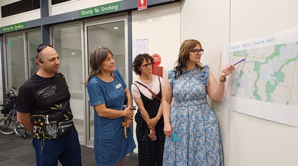 When road safety concerns are deterring residents from walking to nearby shops, we have a big problem. That was one of the key messages from the Coburg Road Safety Forum held at the Coburg Library on November 22. The forum was convened by Merri-bek Bicycle Users Group, with several Councillors attended. We heard from five community groups from Coburg and Coburg North, who are campaigning for safer roads for walking and cycling.