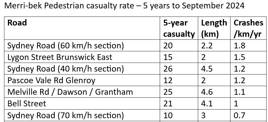 Liveable Sydney Road are focused the 60 km/h section of Sydney Road, between O’Hea Street in Coburg North and Boundary Road. They have a Facebook group and are currently running a petition. They want a reduced speed limit, improved signage, enhanced pedestrian crossings, dedicated turning lanes, traffic calming measures, greater provisions and protections for pedestrians, cyclists and road users, and stronger enforcement. They noted that too many vehicles are not stopping at pedestrian lights.