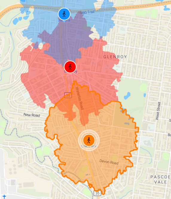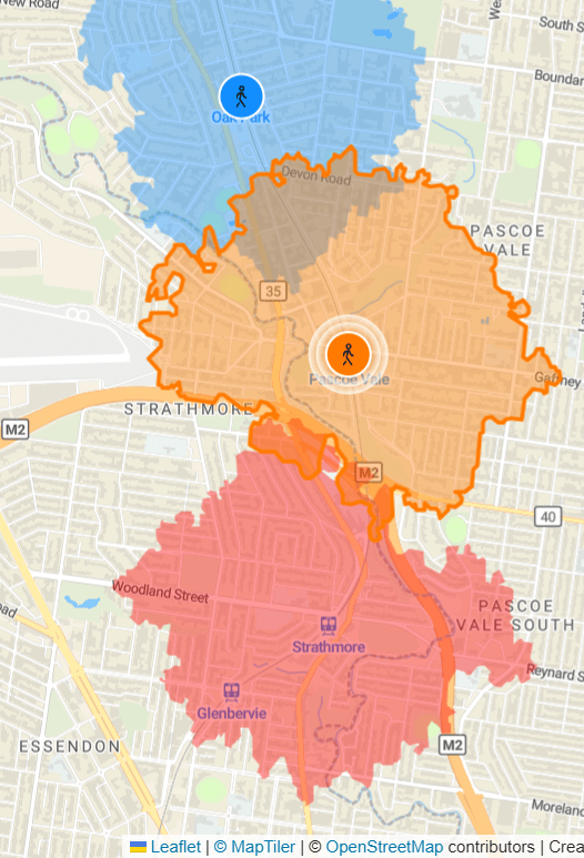 Merri-bek has a fairly decent coverage of public transport. About three-quarters of Merri-bek residents live within a 5 minute walk (400 metres) of a public transport stop. Nearly all live within 600 metres of a stop. Unfortunately most bus services run less frequently than trains and trams. Most buses don’t run all evening, and half of our bus routes still don’t run on a Sunday But the ability to track buses in real-time has been a game changer for users of these infrequent buses.
